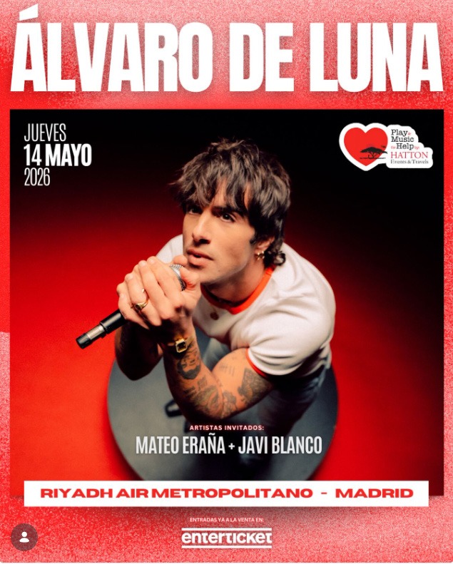 El escenario elegido para esta iniciativa será el Riyadh Air Metropolitano, uno de los grandes recintos de la capital, que abrirá sus puertas para recibir a miles de asistentes en una jornada marcada por la solidaridad y la música en directo. A partir de las 21:00 horas, el público podrá disfrutar de la actuación del artista sevillano Álvaro de Luna, uno de los nombres más destacados del panorama pop nacional actual.