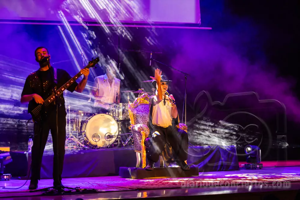 Desde los primeros compases del concierto quedó claro que la noche iba a ser especial. Con una puesta en escena colorida y una energía contagiosa, el grupo conectó rápidamente con el público salmantino, que no tardó en levantarse de sus asientos para cantar y bailar cada canción.