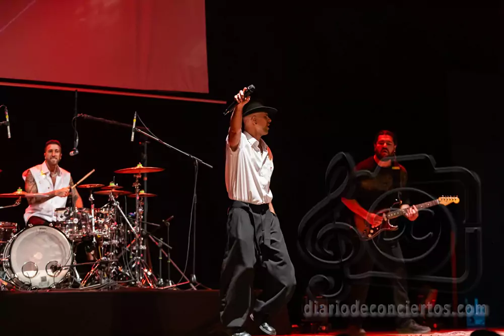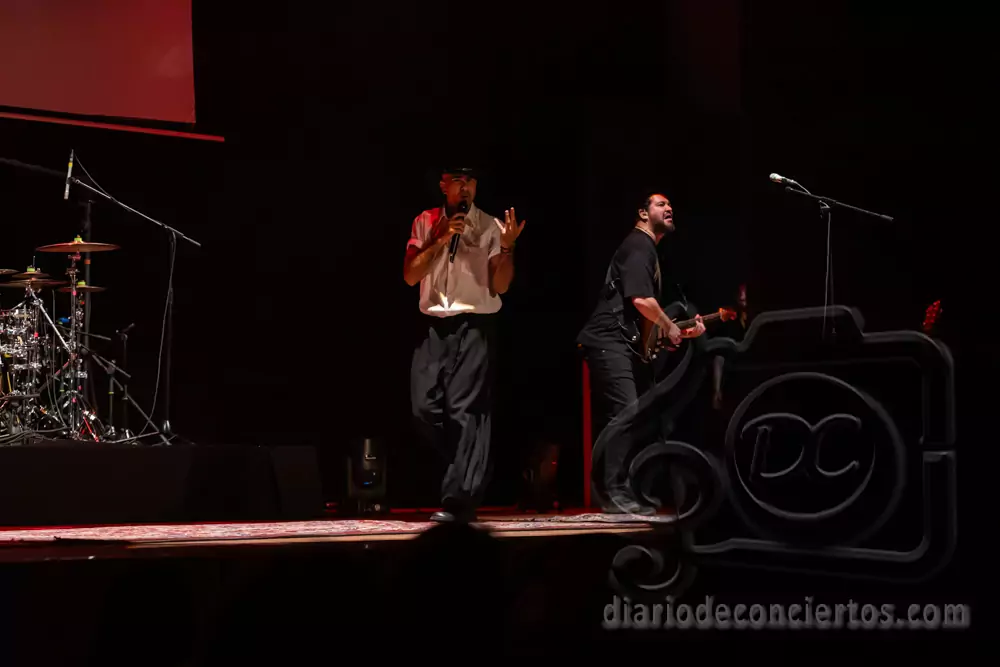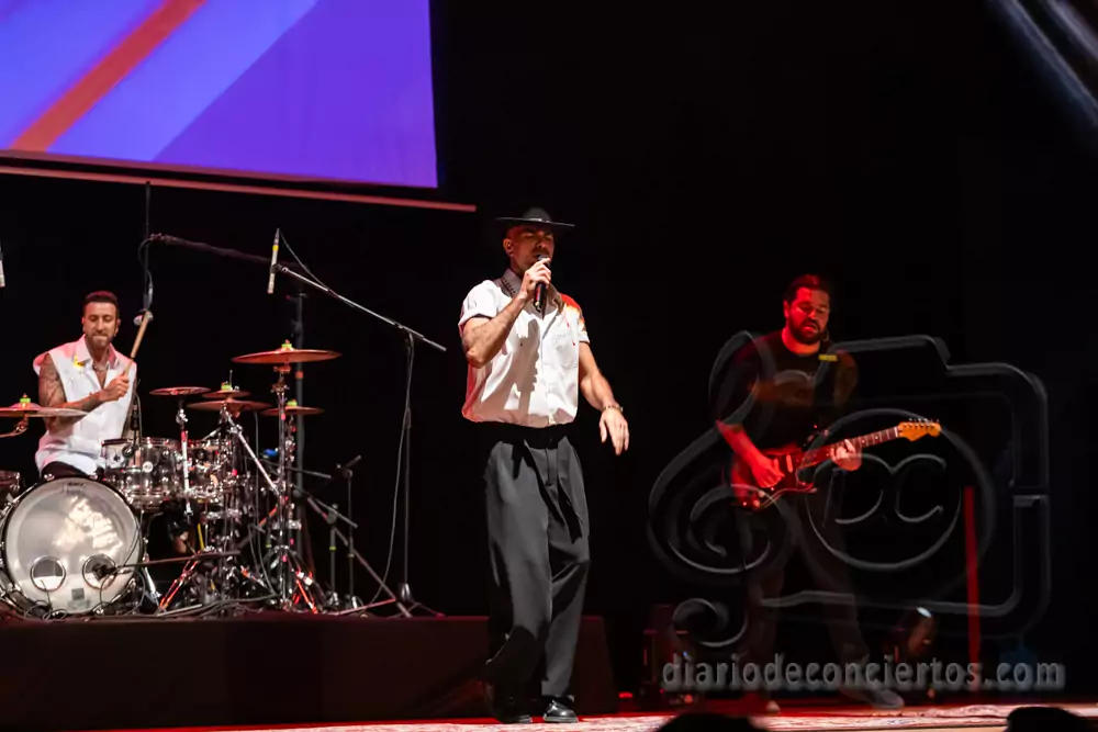 A lo largo del concierto, Efecto Pasillo repasó algunos de los temas que han marcado su carrera, combinando pop, funk, reggae y ritmos latinos en una fórmula que sigue funcionando a la perfección en directo. Canciones tan coreadas como “Pan y Mantequilla”, “No importa que llueva” o “Cuando me siento bien” desataron la euforia colectiva y convirtieron el auditorio en una auténtica pista de baile.