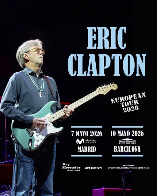 El inconfundible sonido de la guitarra de Eric Clapton volverá a escucharse en España el próximo año. El legendario músico británico ha anunciado dos fechas muy especiales dentro de su gira europea: el 7 de mayo en el Movistar Arena de Madrid y el 10 de mayo en el Palau Sant Jordi de Barcelona. Dos noches que prometen ser históricas para los amantes del rock y el blues.