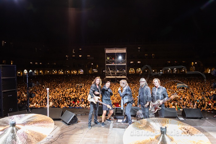 El esperado desenlace llegó con “The Final Countdown”, convertido en un estallido colectivo que hizo temblar los arcos de la Plaza Mayor. El histórico himno, coreado por todos los presentes, puso el broche de oro a una noche mágica en la que Salamanca se rindió a los pies de uno de los grandes referentes del rock europeo.