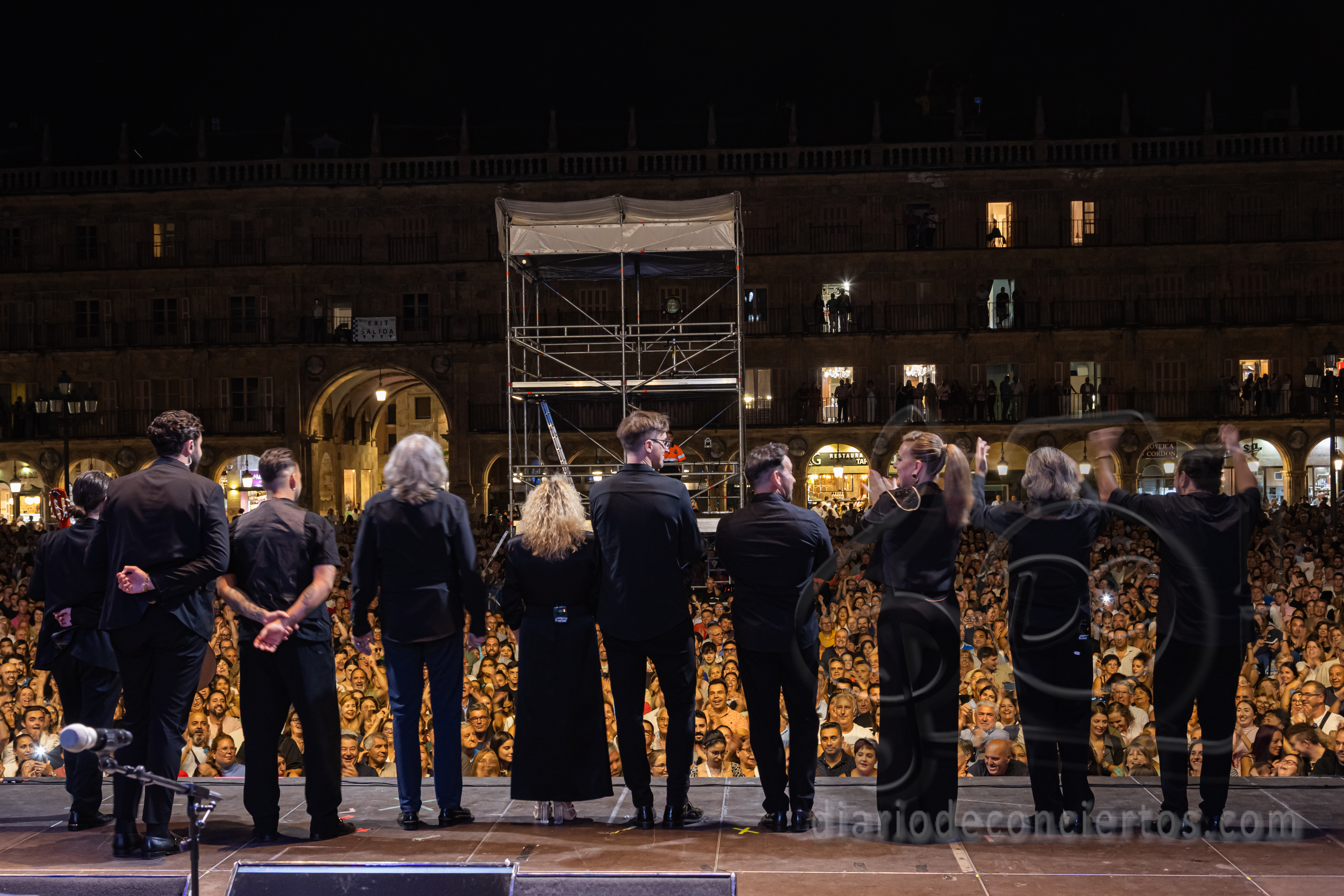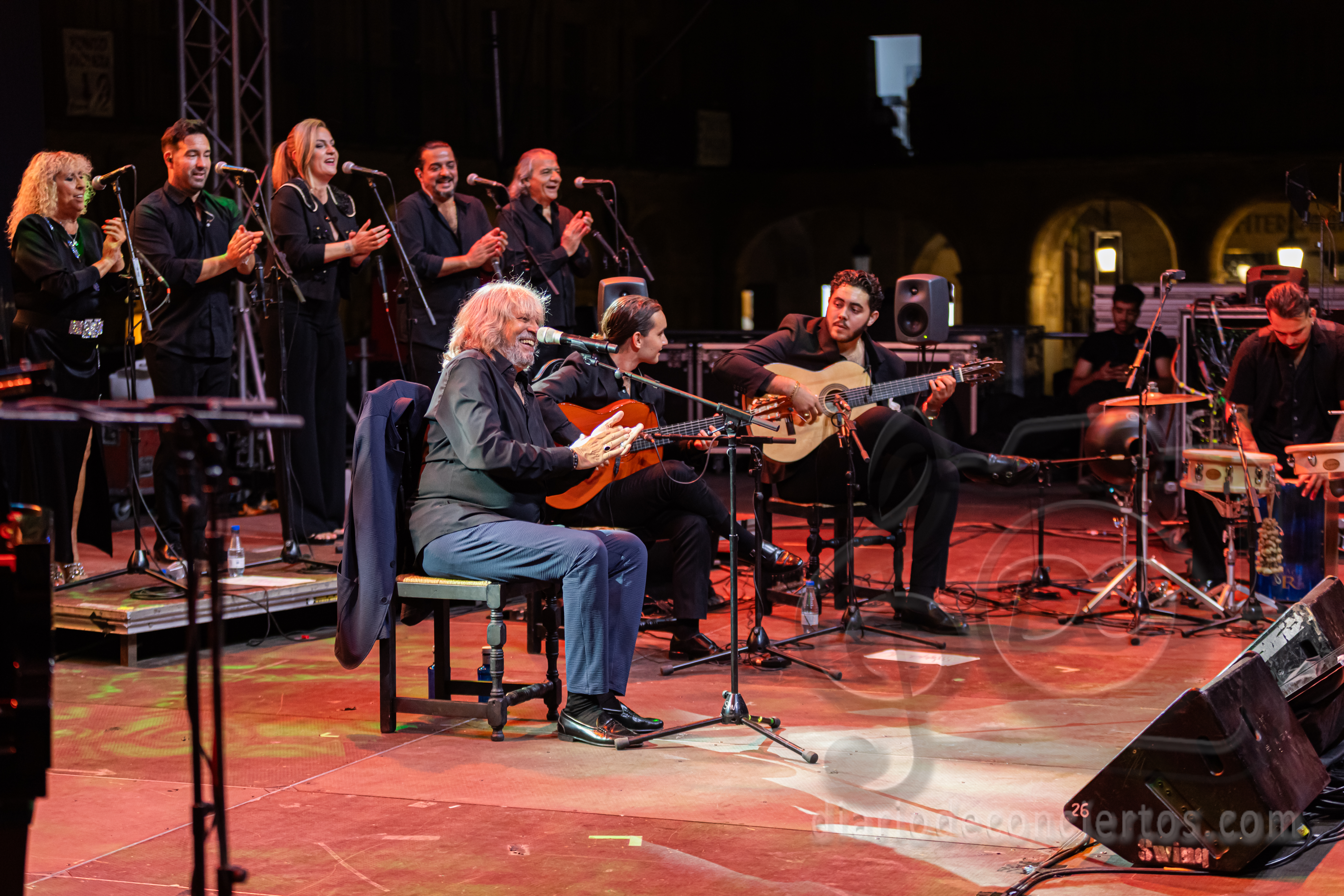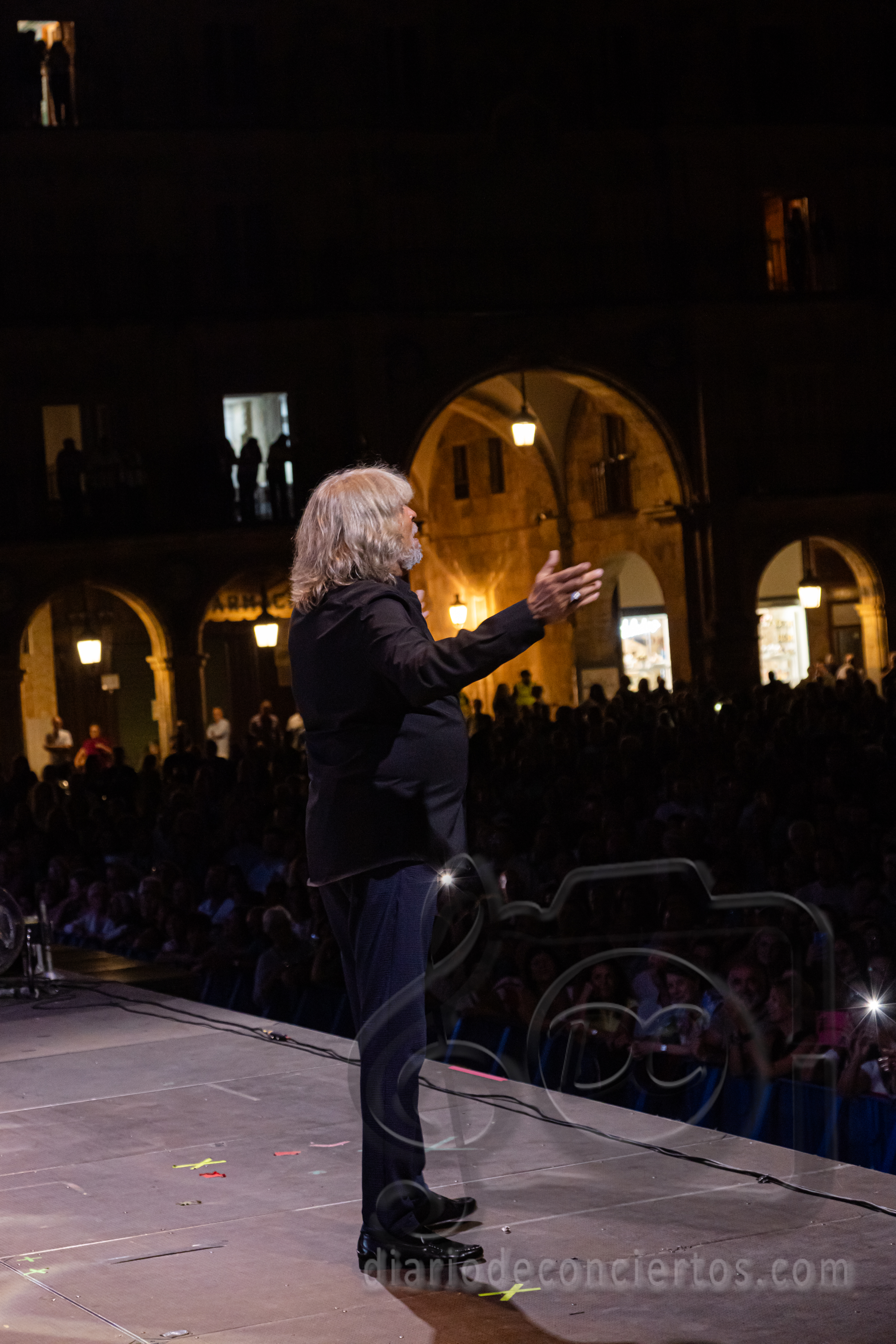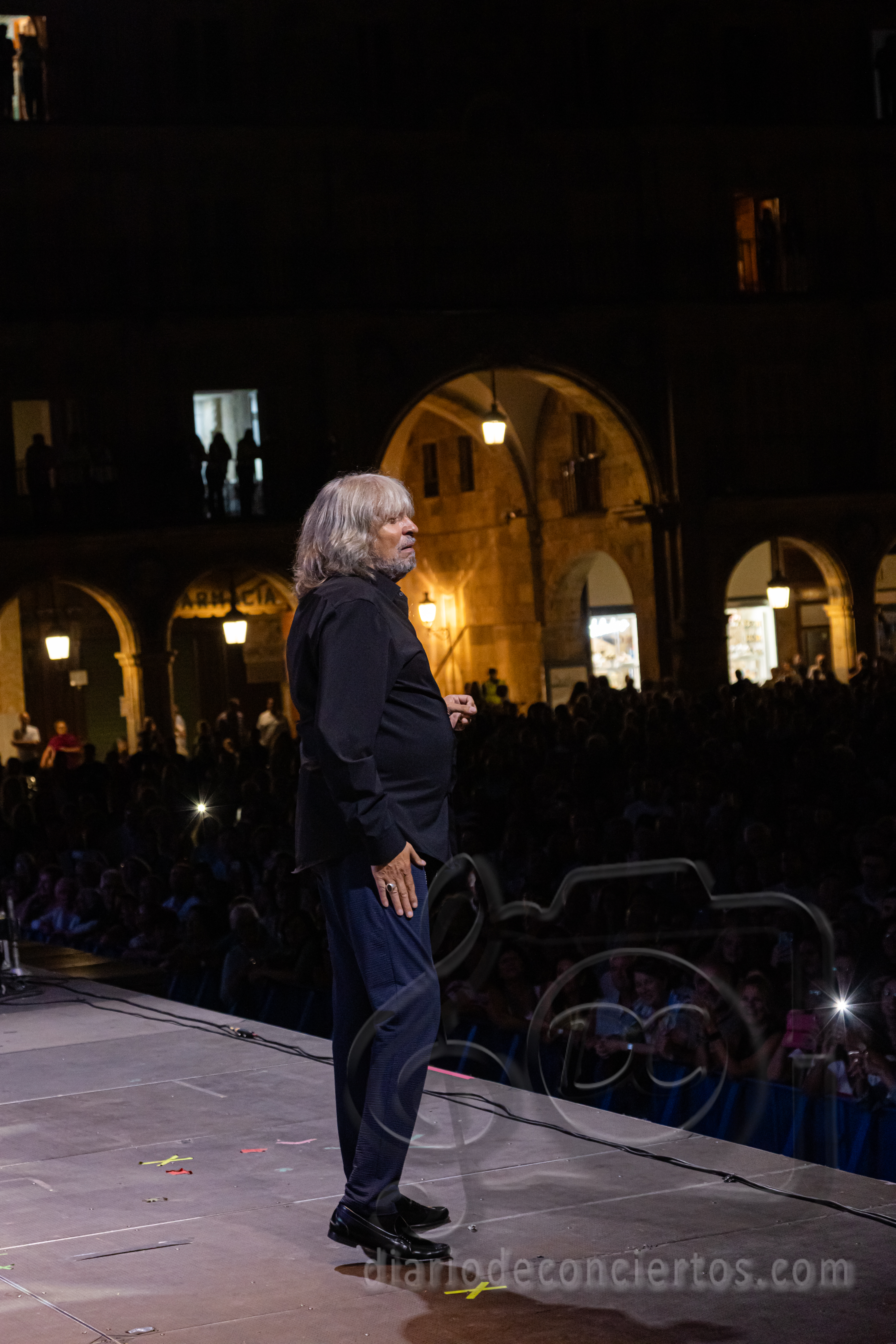 La Plaza Mayor de Salamanca se transformó anoche en un auténtico tablao flamenco con la actuación de José Mercé, encargado de poner el broche de oro a las Ferias y Fiestas de la Virgen de la Vega. El cantaor jerezano, uno de los grandes referentes del género, ofreció un concierto inolvidable con su espectáculo “José Mercé canta a Manuel Alejandro”, en el que rindió homenaje al célebre compositor gaditano y también al maestro salmantino Rafael Farina, al que dedicó unas palabras de respeto y admiración antes de interpretar uno de sus temas más recordados. El público, variado y entregado, acompañó con palmas, vítores y ovaciones cada quejío del artista, que volvió a demostrar por qué su voz sigue siendo una de las más respetadas y queridas del flamenco.