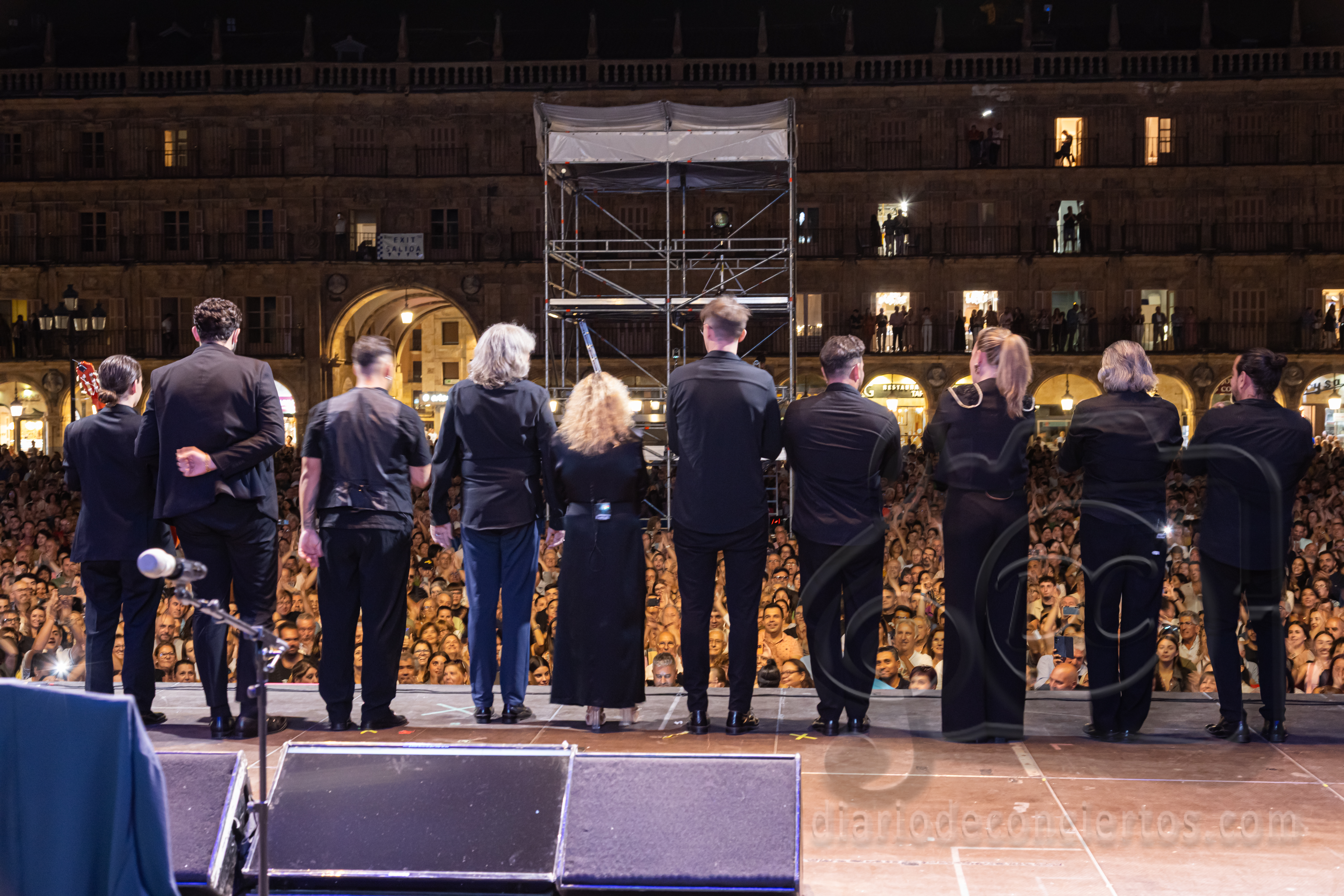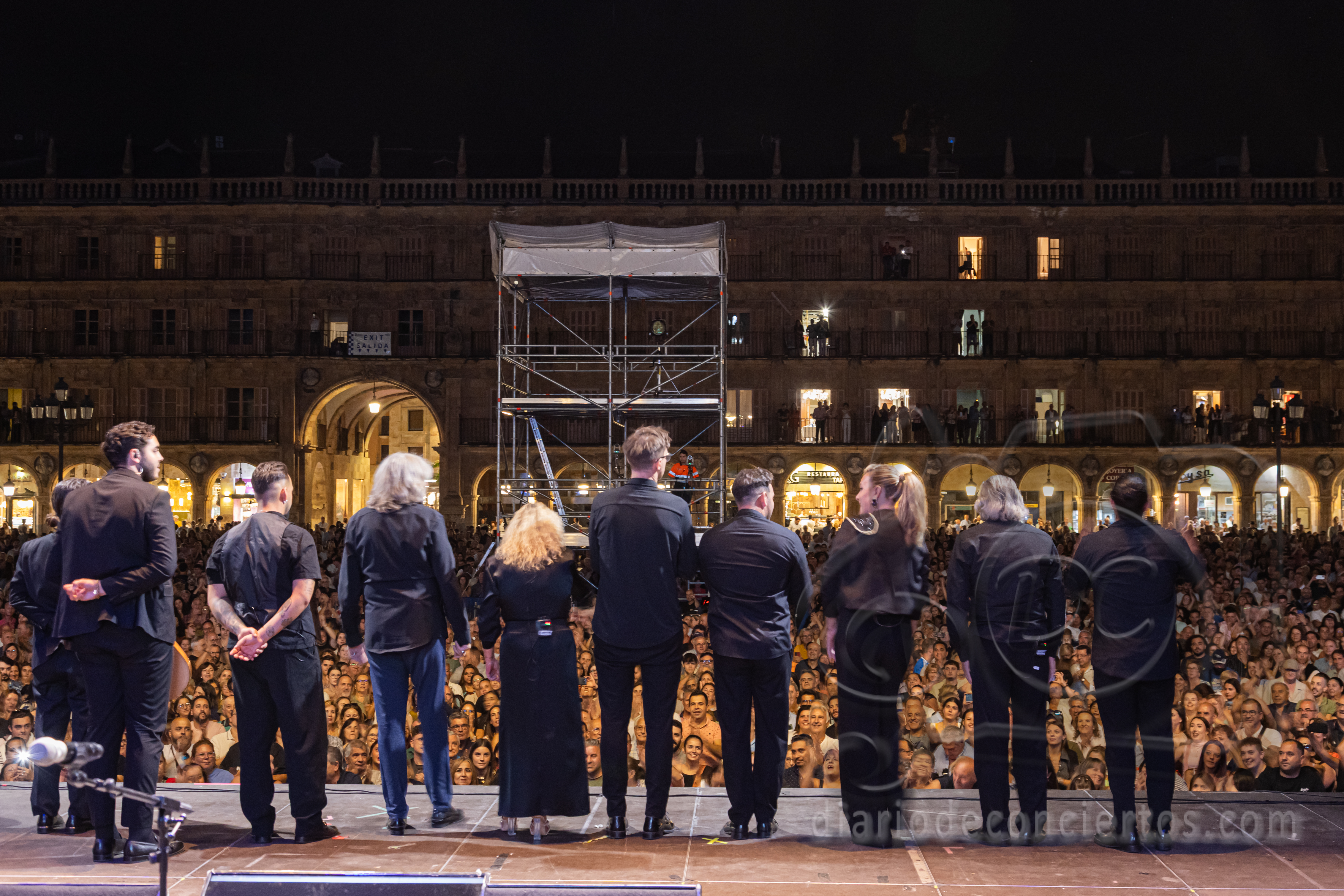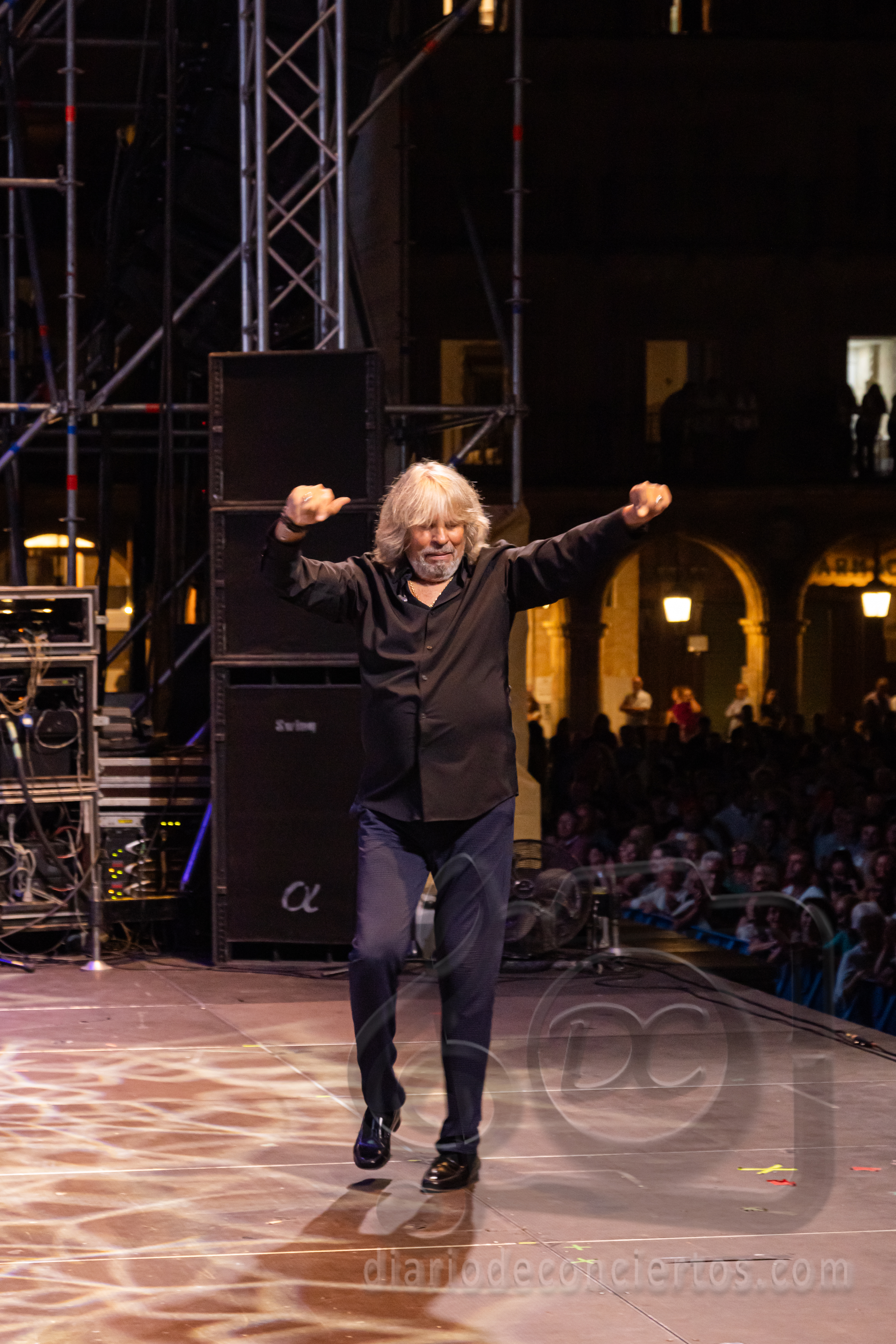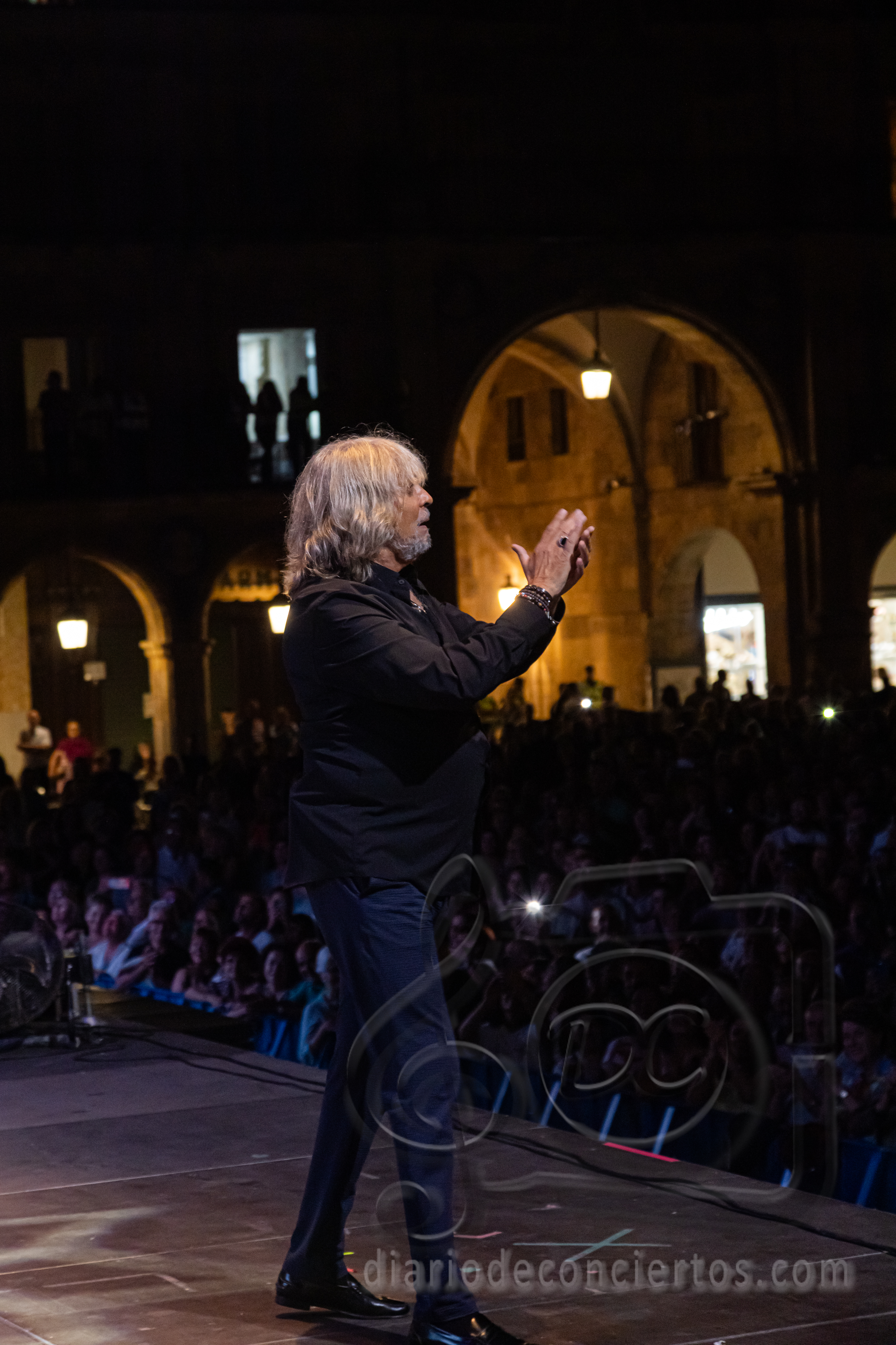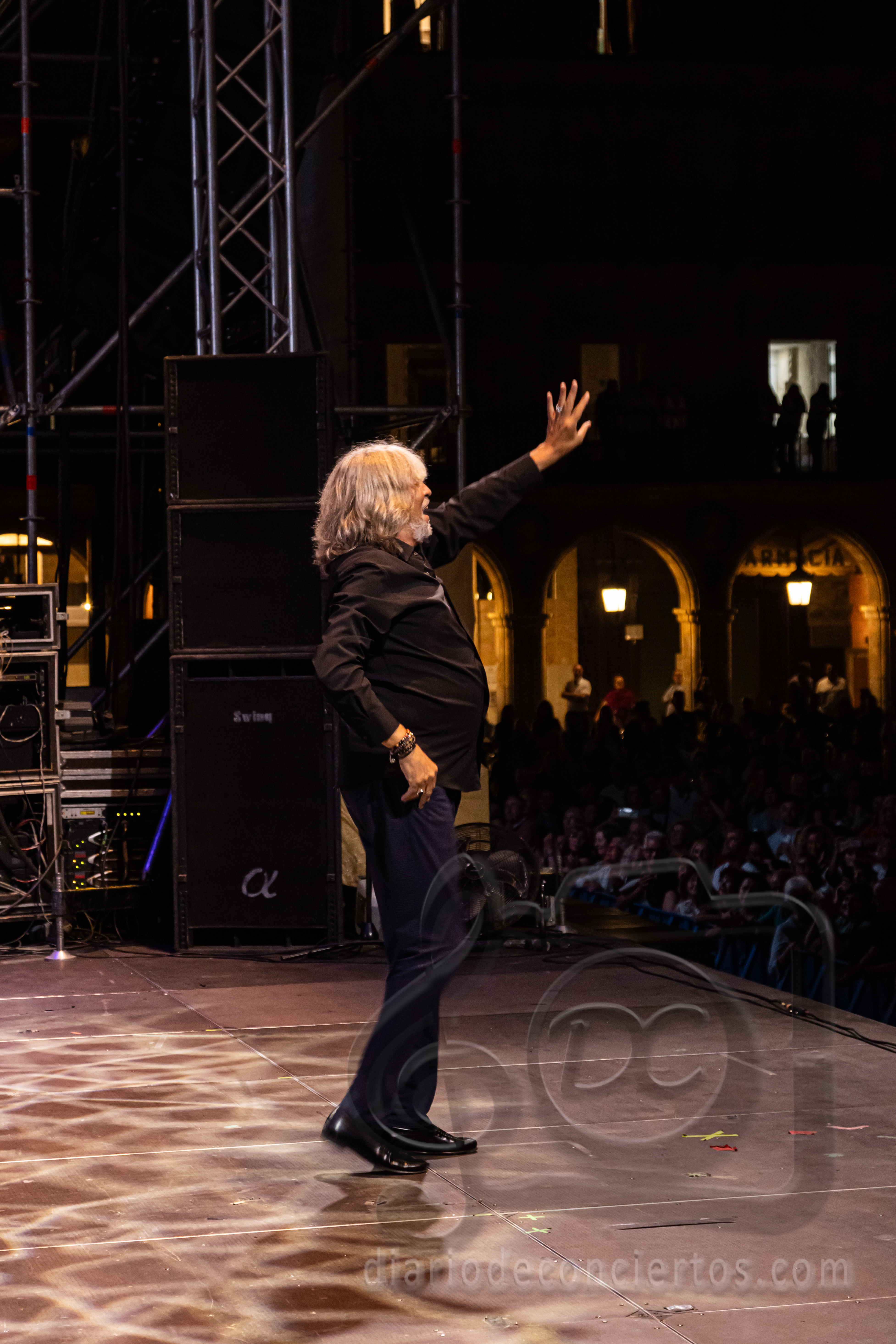 La Plaza Mayor de Salamanca se transformó anoche en un auténtico tablao flamenco con la actuación de José Mercé, encargado de poner el broche de oro a las Ferias y Fiestas de la Virgen de la Vega. El cantaor jerezano, uno de los grandes referentes del género, ofreció un concierto inolvidable con su espectáculo “José Mercé canta a Manuel Alejandro”, en el que rindió homenaje al célebre compositor gaditano y también al maestro salmantino Rafael Farina, al que dedicó unas palabras de respeto y admiración antes de interpretar uno de sus temas más recordados. El público, variado y entregado, acompañó con palmas, vítores y ovaciones cada quejío del artista, que volvió a demostrar por qué su voz sigue siendo una de las más respetadas y queridas del flamenco.