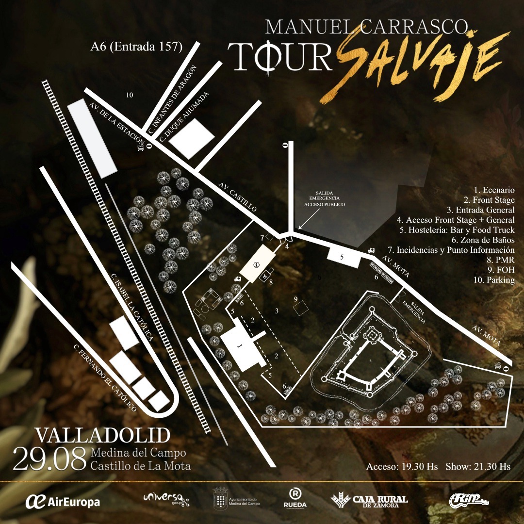 Apertura de puertas: 19:30 horas por la Avenida Castillo (puerta principal del recinto).