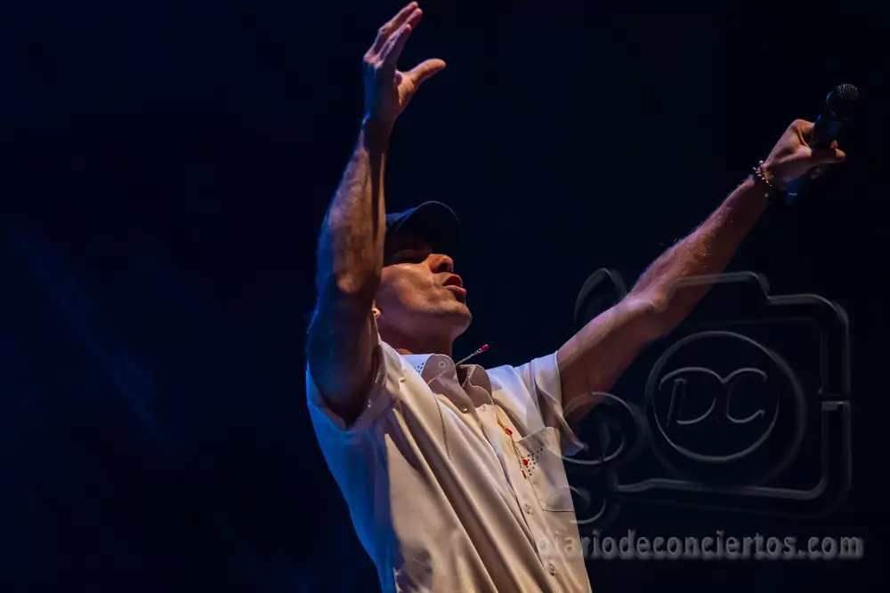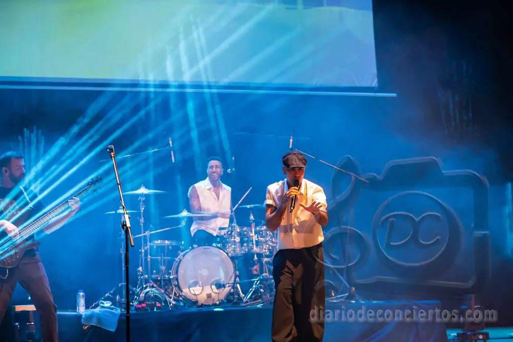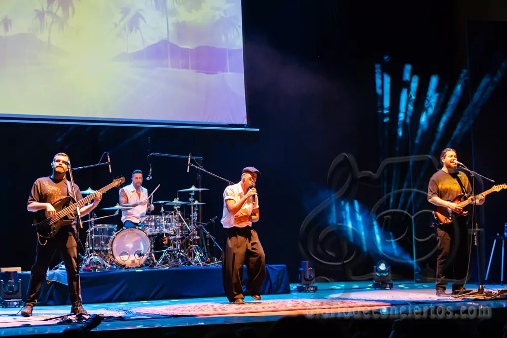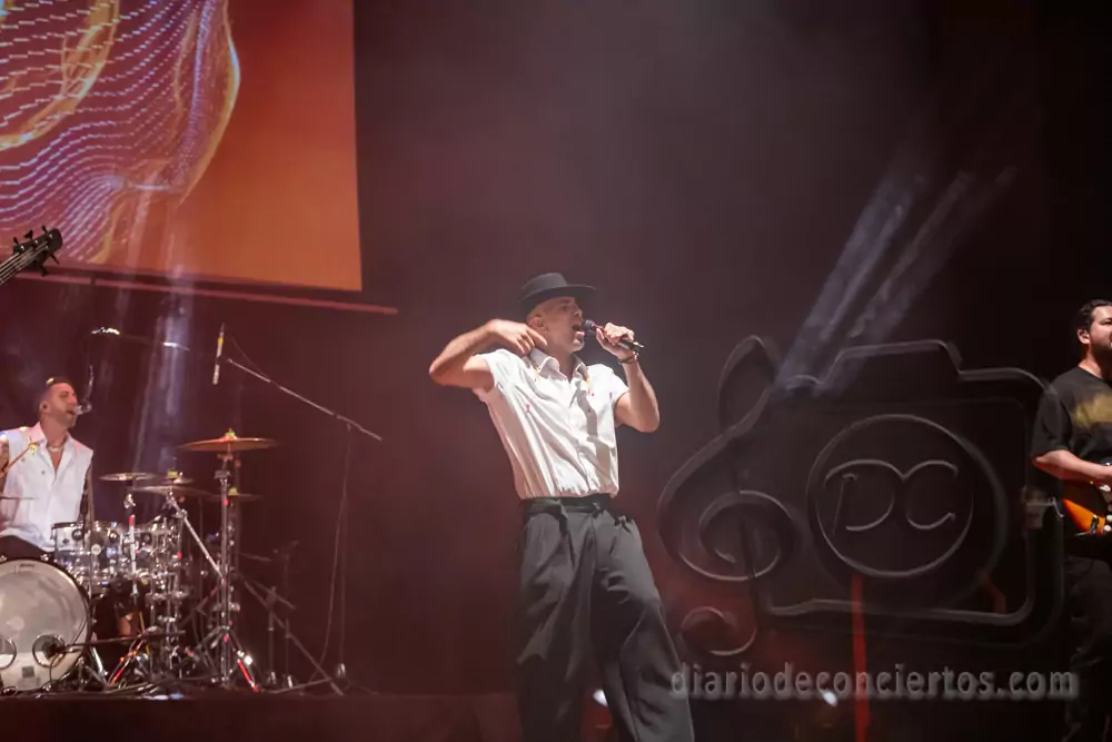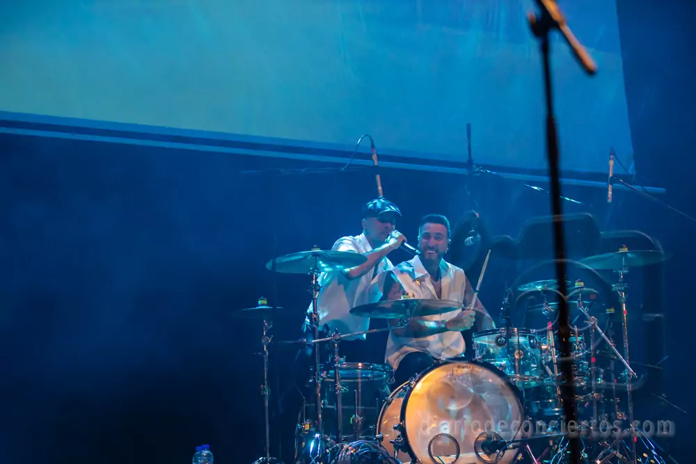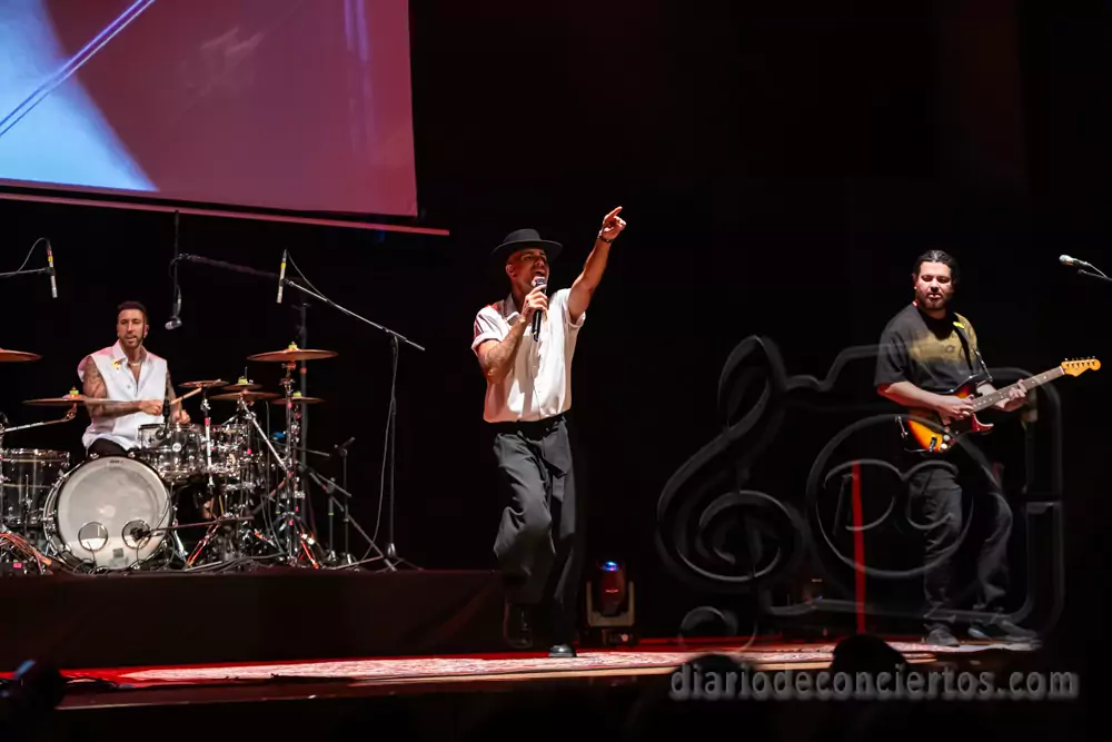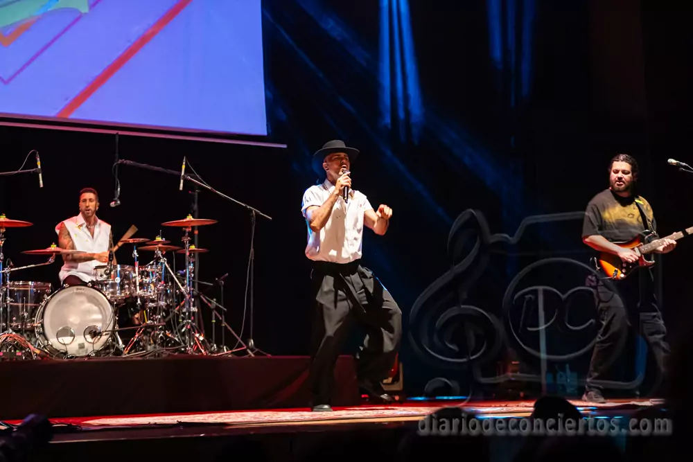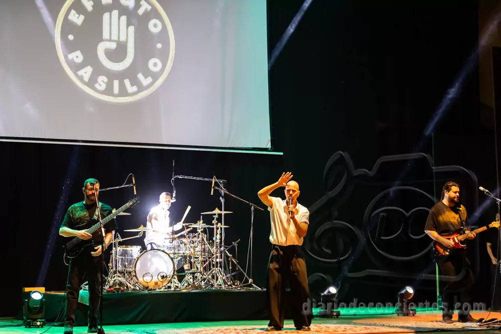 A lo largo del concierto, Efecto Pasillo repasó algunos de los temas que han marcado su carrera, combinando pop, funk, reggae y ritmos latinos en una fórmula que sigue funcionando a la perfección en directo. Canciones tan coreadas como “Pan y Mantequilla”, “No importa que llueva” o “Cuando me siento bien” desataron la euforia colectiva y convirtieron el auditorio en una auténtica pista de baile.