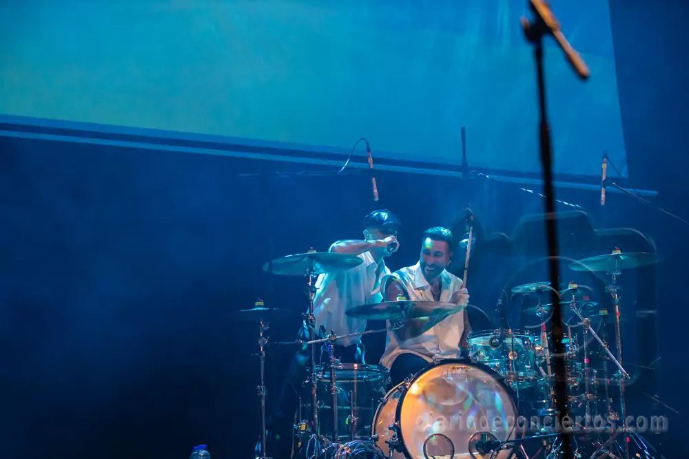 Desde los primeros compases del concierto quedó claro que la noche iba a ser especial. Con una puesta en escena colorida y una energía contagiosa, el grupo conectó rápidamente con el público salmantino, que no tardó en levantarse de sus asientos para cantar y bailar cada canción.