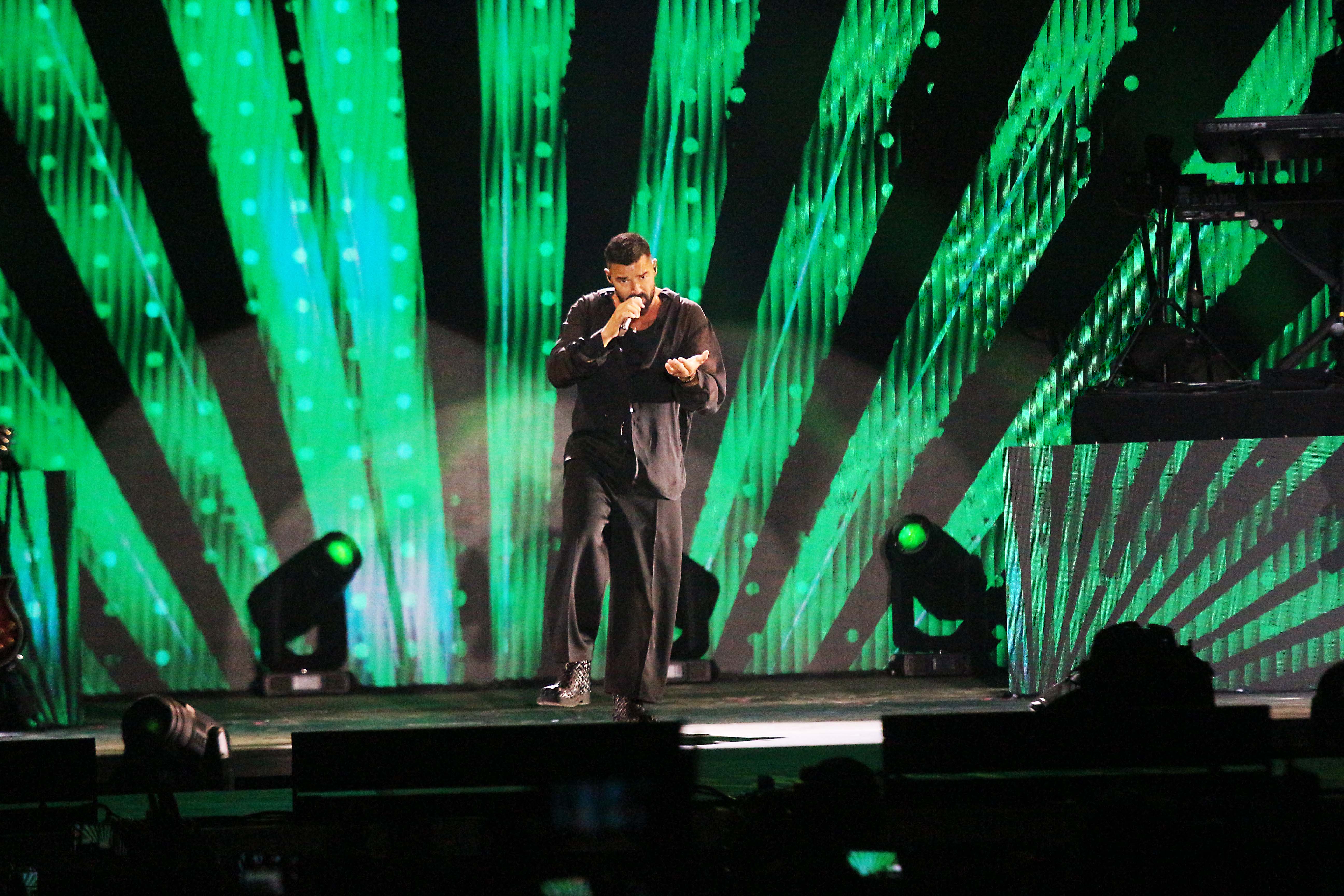Algunos de sus éxitos sonaron en voz alta como, ‘María’, ‘Adrenalina’, ‘She Bangs’, así el ambiente iba creciendo entre los ritmos pegadizos, mientras el artista sacaba su versión más sensual entre bailes y movimientos.