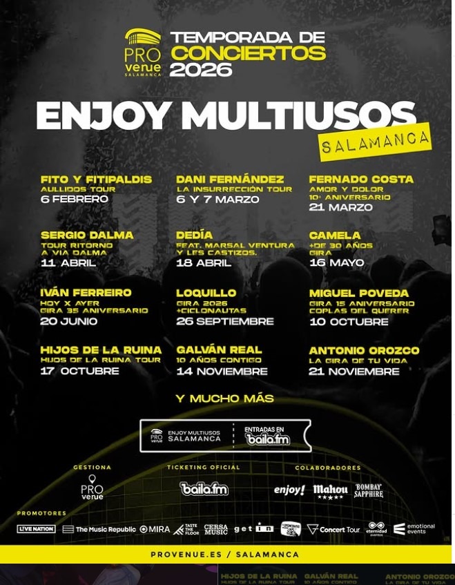 Salamanca se consolida como epicentro musical con la presentación oficial de la Temporada de Conciertos 2026 de Provenue. En un evento cargado de expectación en el emblemático Enjoy Multiusos, se ha revelado un cartel de lujo que traerá a la ciudad del Tormes a los nombres más potentes de la escena nacional.